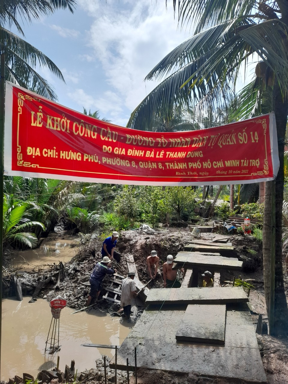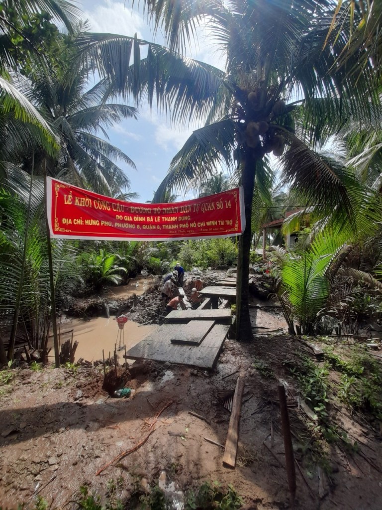 Nhiều lần, khi đi bán vé số nuôi hai con, bà Út đã bị rơi xuống sông. Nhận thấy hoàn cảnh khó khăn của gia đình cô Út, chú Lụa, chúng tôi khẩn trương khởi công xây dựng lại cây cầu càng sớm càng tốt.