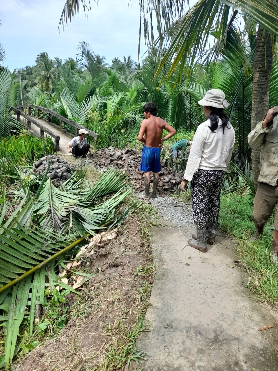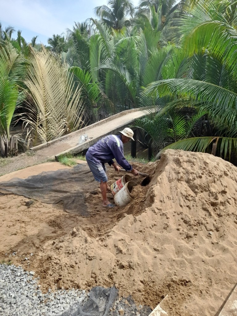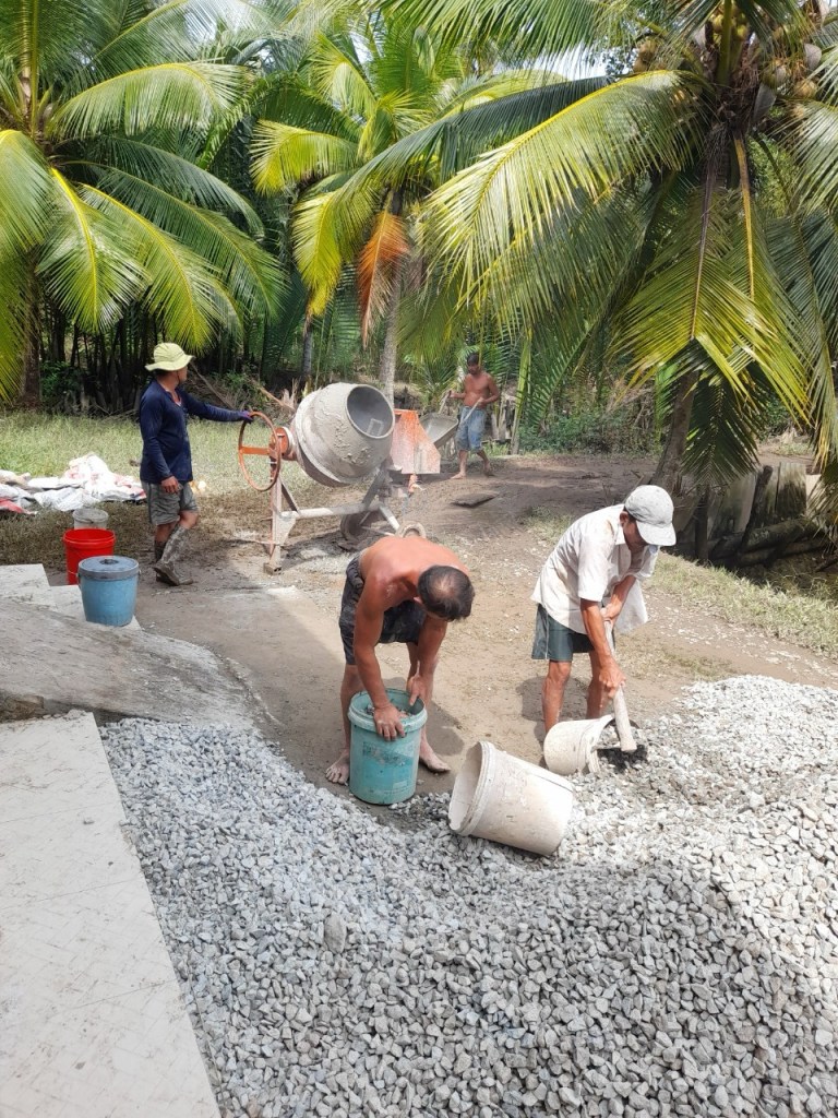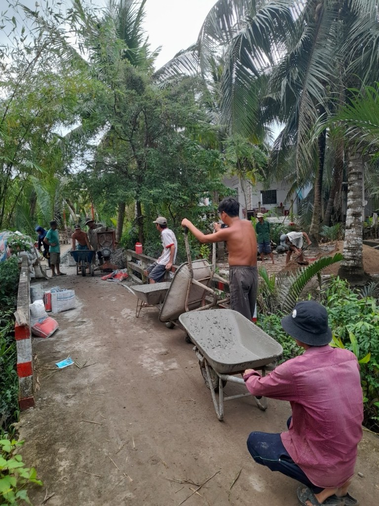 Continuing from Thanh Dung Bridge in Mo Cay Nam, Ben Tre. We are offering the local residents Thanh Dung Road, named after our mother. Our hope is to bring significant value to the children, the elderly, and those with disabilities in this community. They will no longer worry about flooding, be able to work for a living in peace, and the children can attend school with smiles on their faces.